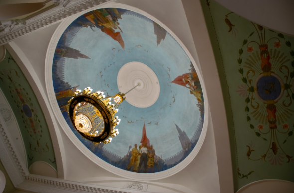 Торжественное открытие фестиваля прошло в большом зале отреставрированного московскими мастерами Дома культуры г. Салаира. Омрачило впечатление, что зрители заходили и сидели в полутемном зале. Увидеть красивейшие росписи на потолке начала 1950-х годов и люстру нам так и не удалось. Выходили мы из зала в сумеречном освещении. Что это? Экономия электричества? Сломалась люстра? Мы ведь были не в зале кинотеатра, а на конференциях, съездах, собраниях как-то свет в зале не принято выключать.